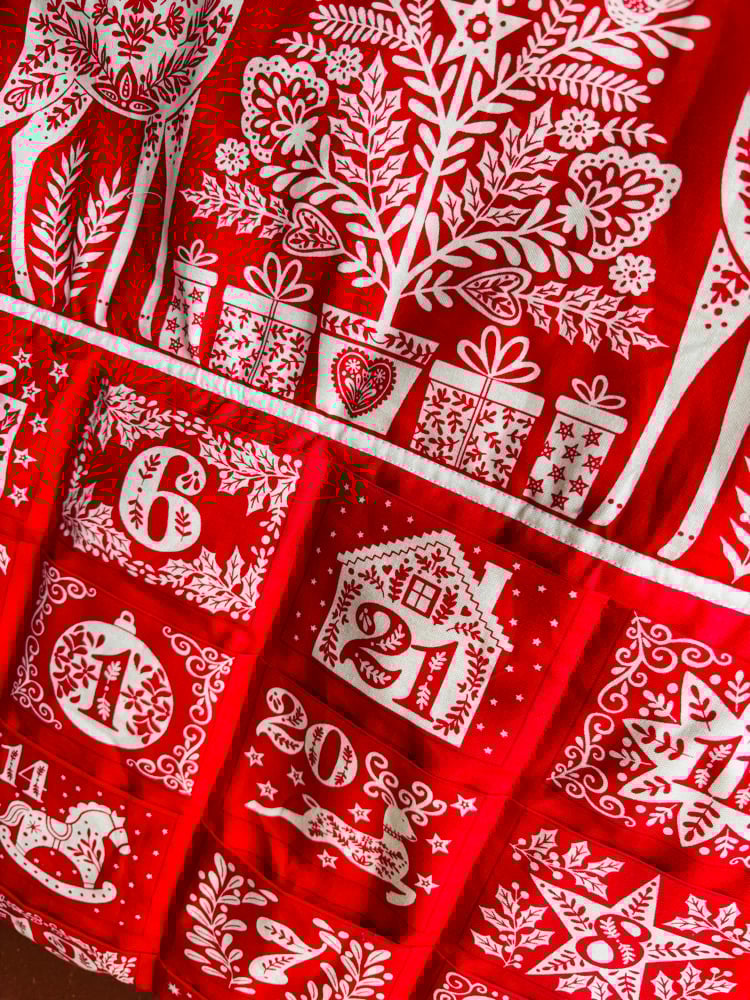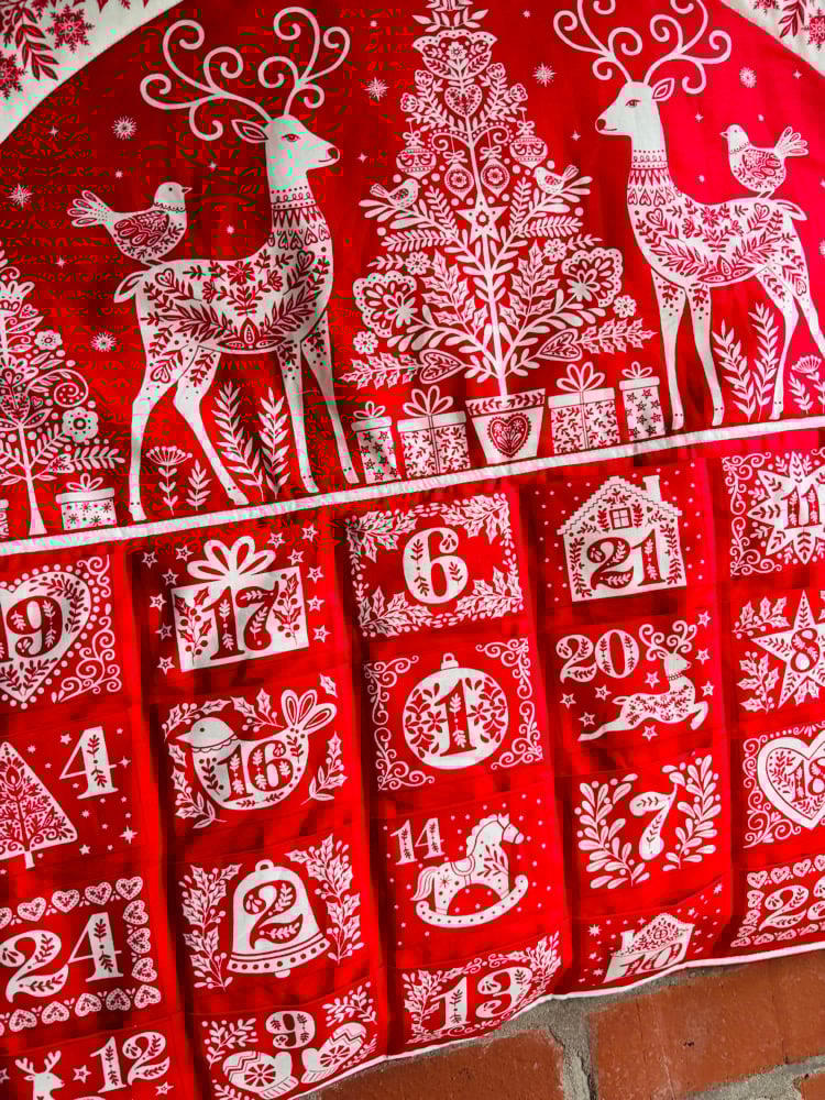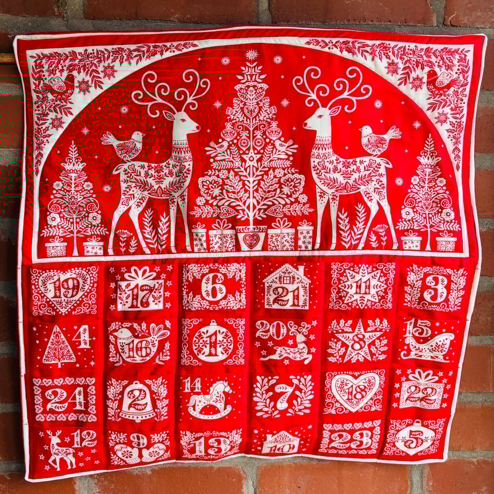 WHAT WILL YOU LEARN: you will learn how to carefully press your advent panel, how to neatly sew the individual pockets, how to add your wadding and backing fabric. How to add your hanging components.